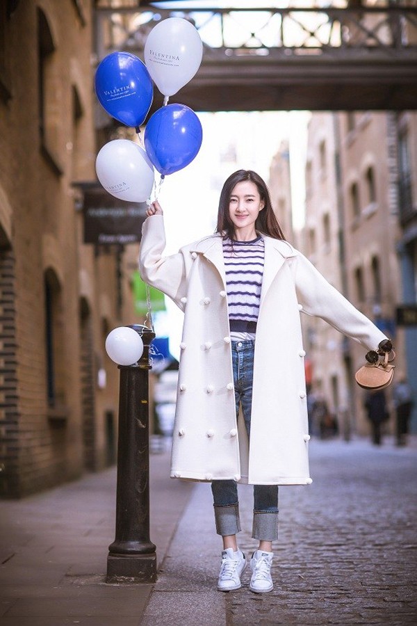 王丽坤手持蓝色气球漫步伦敦老街 回眸浅笑尽显恬静优雅东方女神邂逅英伦古巷 蓝色气球点亮静谧街角光影交错间展露精致侧颜 静谧沉思散发文艺气息倚靠古朴砖墙悠然自得 简约穿搭演绎街头时尚轻盈转身笑靥如花 蓝白气球伴随步伐摇曳生姿漫步石板路遥望远方 清新气质与古老城市对话